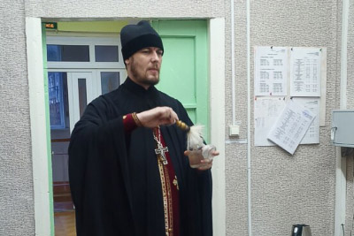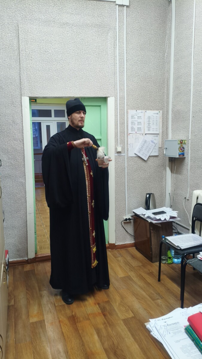 Учащиеся и преподавательский состав во главе с директором Людмилой Анатольевной Кальницкой испросили Божьего благословения на плодотворную работу в новой учебной неделе и были окроплены святой водой. Священник рассказал о предстоящем двунадесятом празднике Введения во Храм Пресвятой Богородицы, какое значение имел и что из себя представлял тот ветхозаветный храм. После по просьбе сотрудников были окроплены святой водой административные помещения.