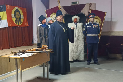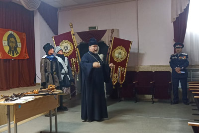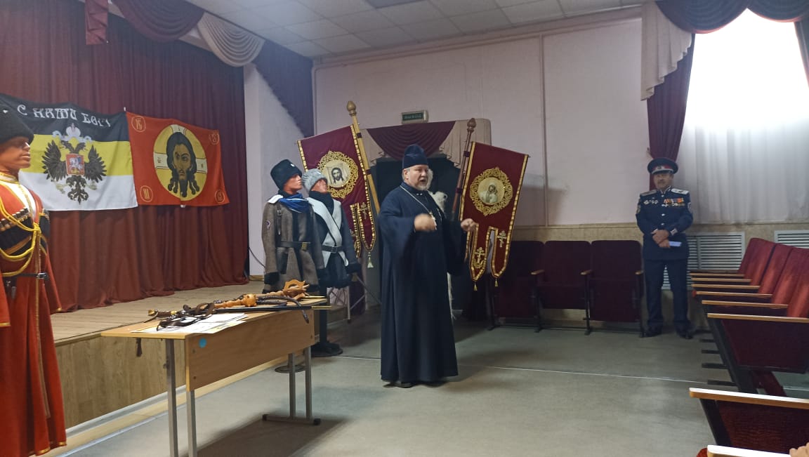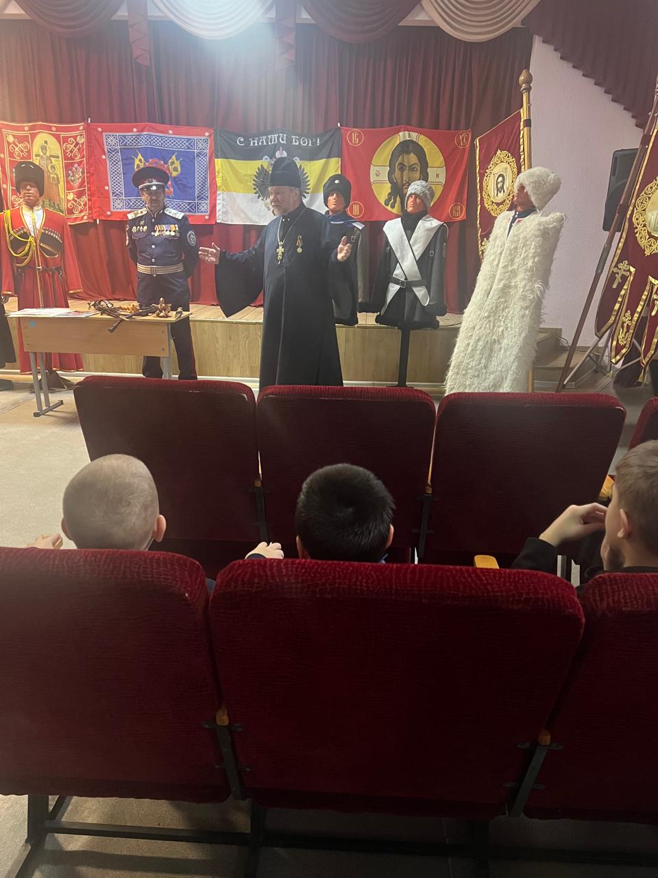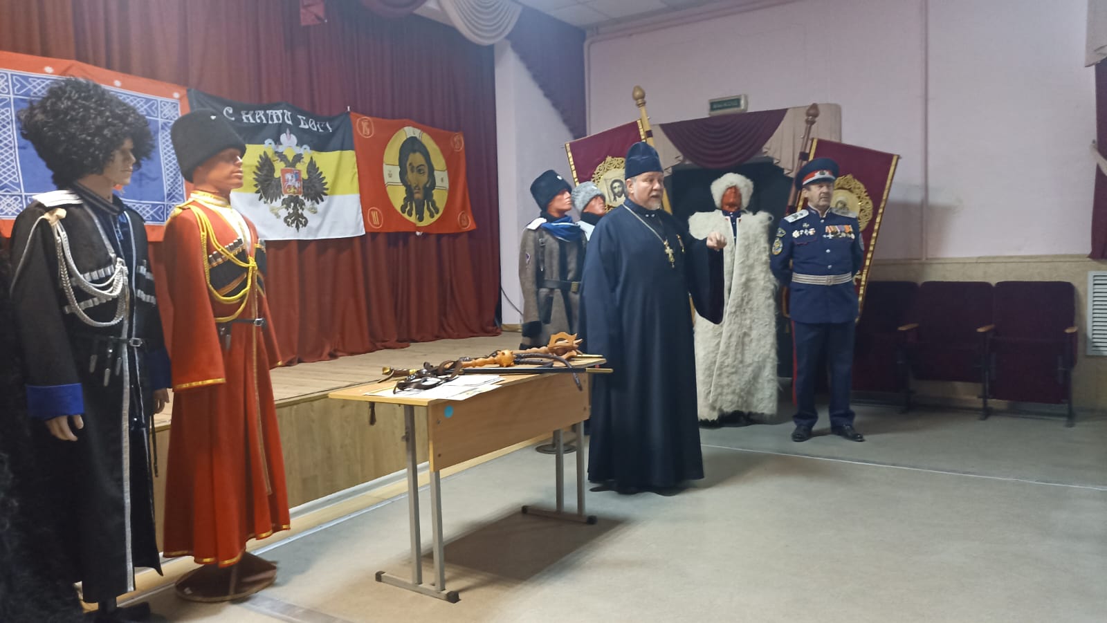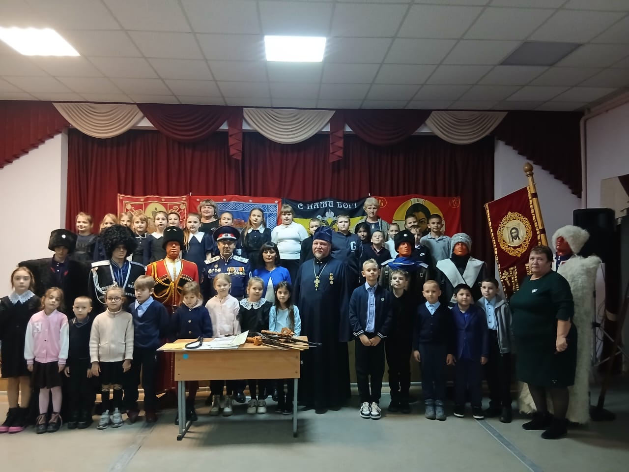 5 ноября в Доме культуры с. Рождествено Валуйского муниципального округа в рамках передвижной тематической выставки, посвящённой истории казачества, прошла встреча учащихся 2-х и 3-х классов Рождественской СОШ с организатором выставки, казачьим Атаманом МКЦ, СКВКРиКЗ и Белгородского Отдела конвоя памяти императора Николая II Сердюковым А.М. и руководитеоем Отдела по взаимодействию с казачестаом Валуйской епархии, духовником казачьих обществ Валуйского муниципального округа, настоятелем храма Рождества Христова с. Рождествено протоиереем Виталием Миршавкой.