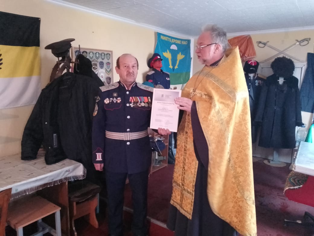 Новости6 декабря в день памяти святого благоверного князя Александра Невского на подворье Атамана Белгородского округа МКЦ и СКВРКЗ казачьего генерал-майора Сердюкова Александра Михайловича, в штабе-музее, совершил молебен протоиерей Виталий Миршавка, руководитель Отдела по взаимодействию с казачеством Валуйской епархии.