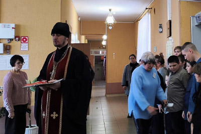 Священник рассказал о грядущем празднике Сретения Господня, учащиеся и преподавательский состав испросили Божьего благословения на плодотворную работу в новой учебной неделе и были окроплены святой водой.