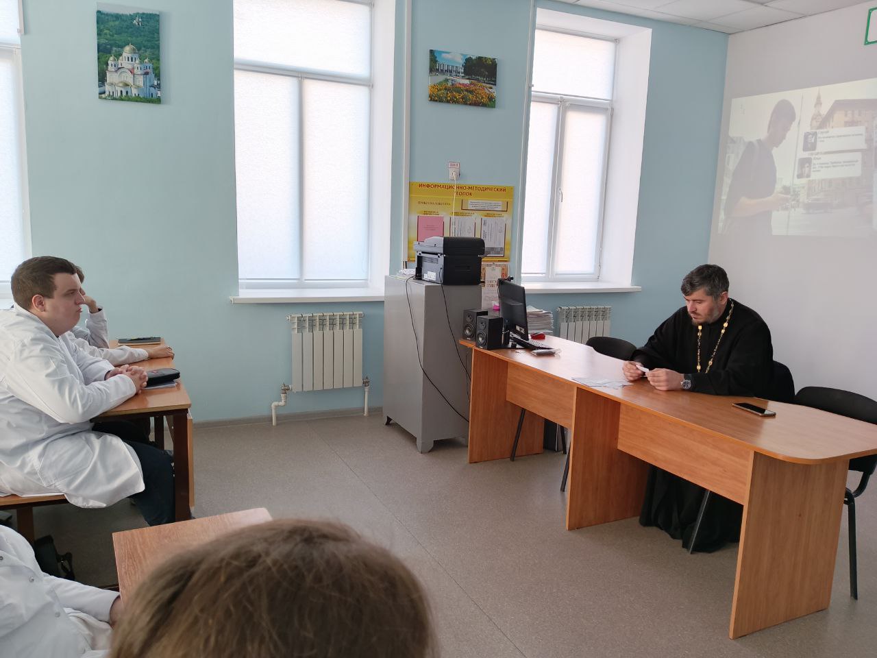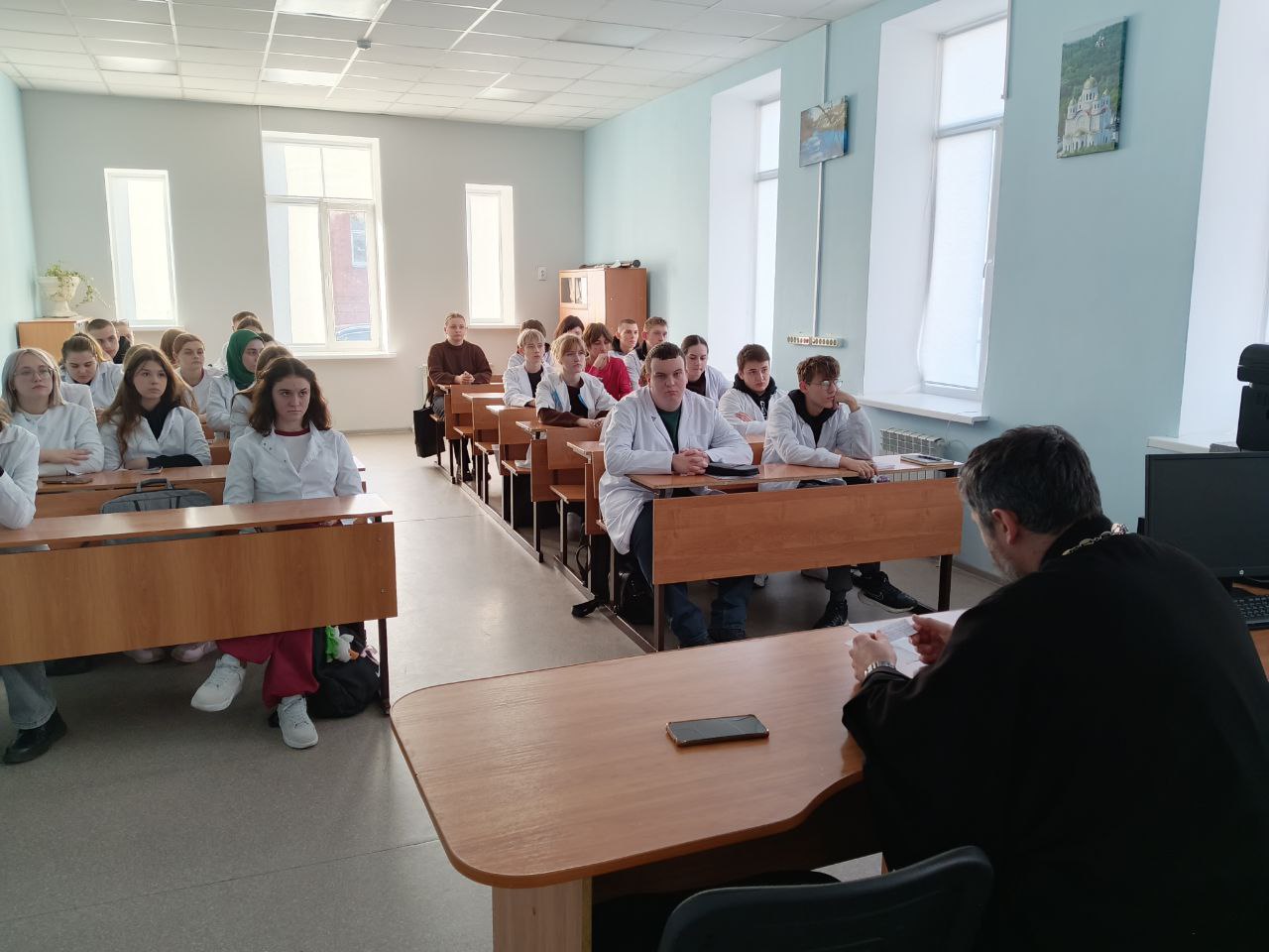 Новости10 декабря в здании медицинского отделения ОГАПОУ «Валуйский колледж» состоялась встреча клирика Никольского храма города Валуйки иерея Дмитрия Гроцкого со студентами первого курса.
