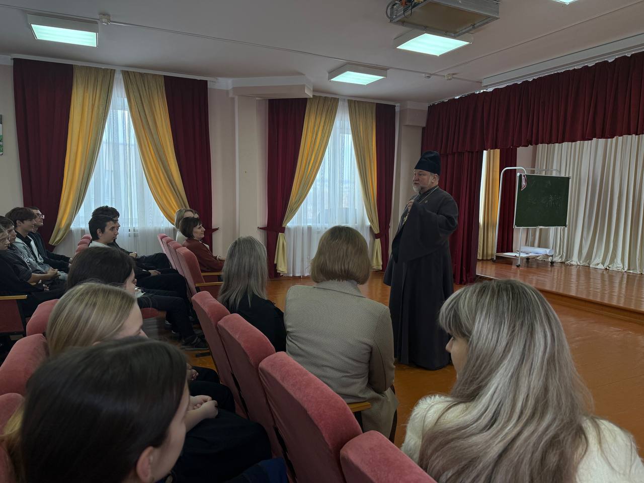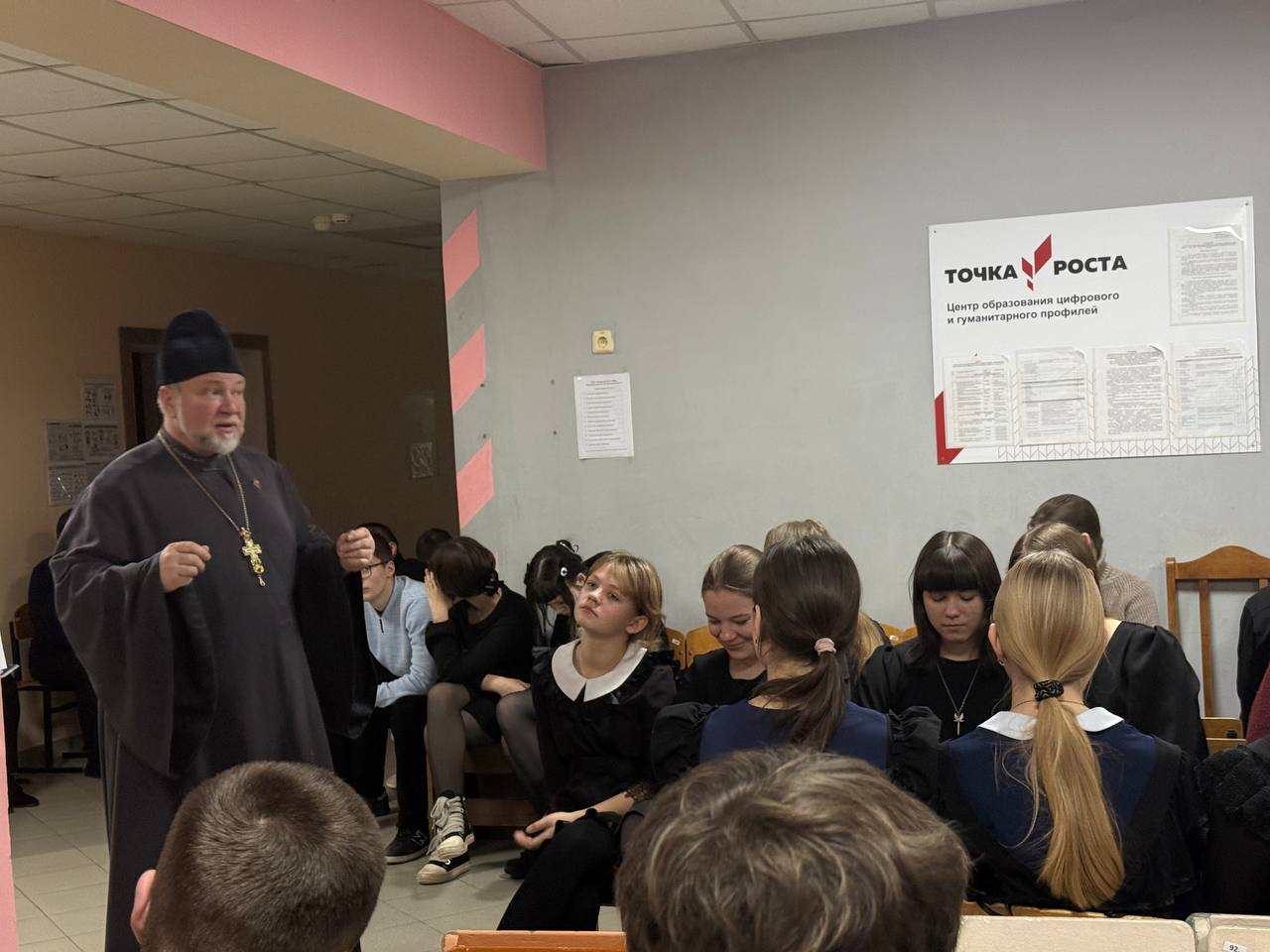 Новости13 января, в день Отдания праздника Рождества Христова, в МОУ «Рождественская СОШ» состоялась встреча настоятеля храма Рождества Христова с. Рождествено с учащимися 8-х-11-х классов.