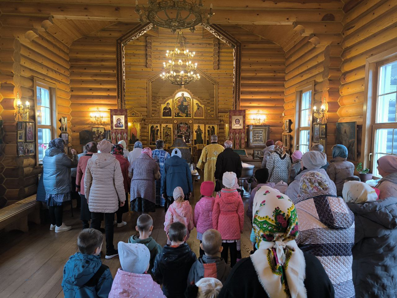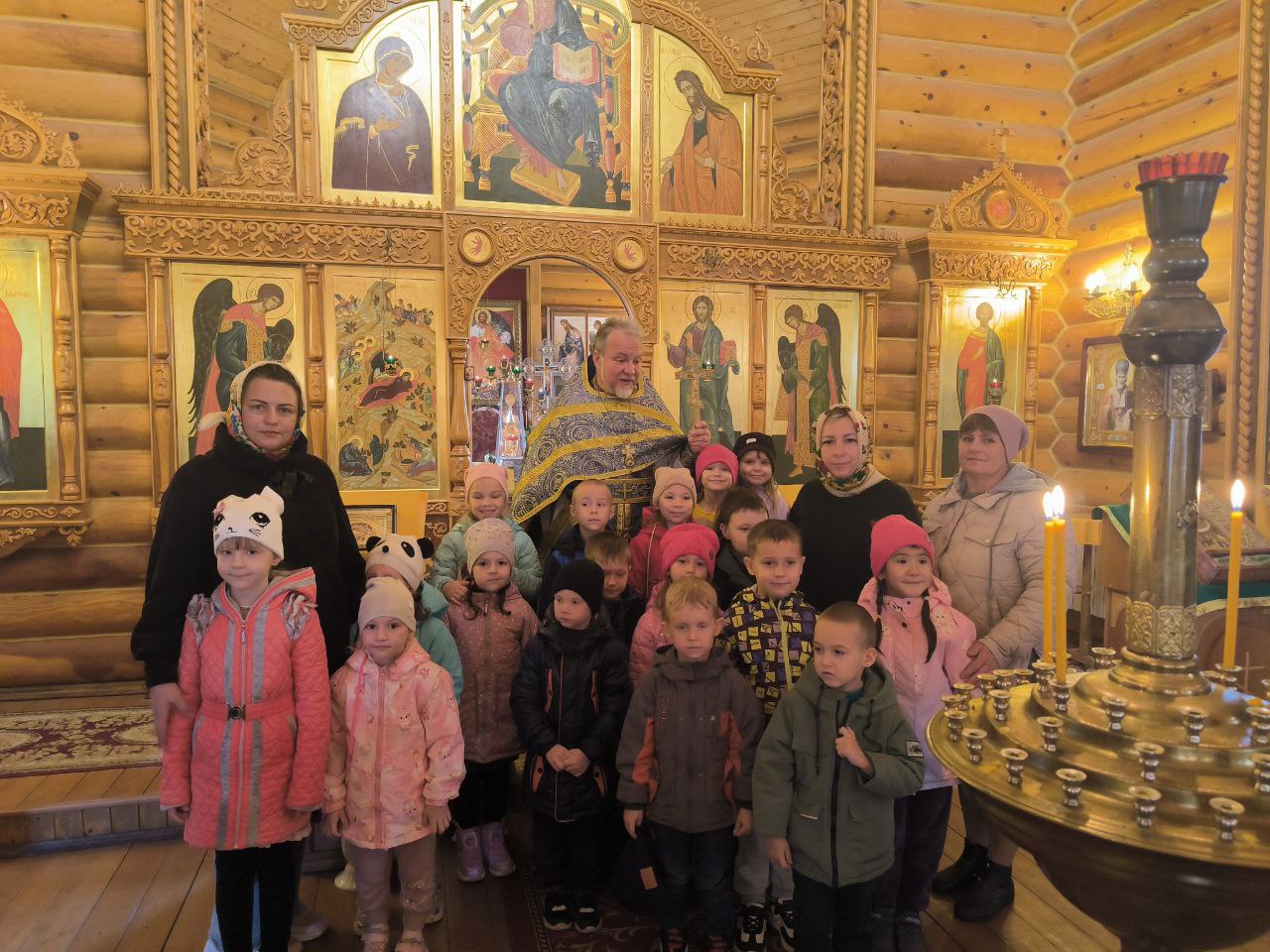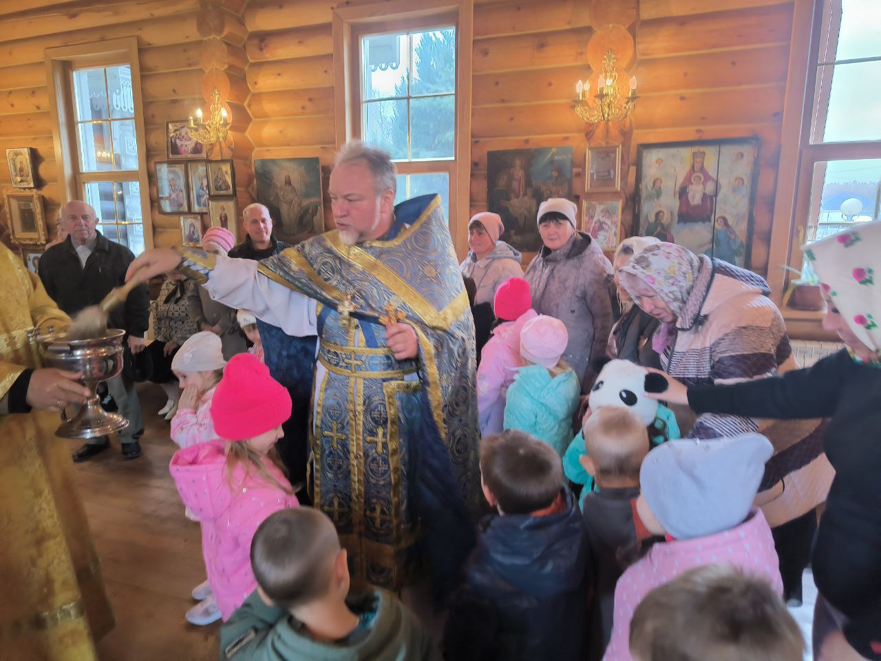 Богослужение совершил настоятель храма протоиерей Виталий Миршавка. По окончании Литургии был совершен молебен, после которого священник окропил святой водой детей и рассказал им о празднике.