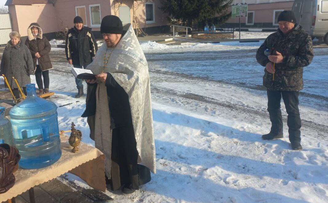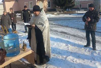Священник совершил великое освящение воды, по окончании которого поздравил всех с праздником и окропил желающих святой водой.