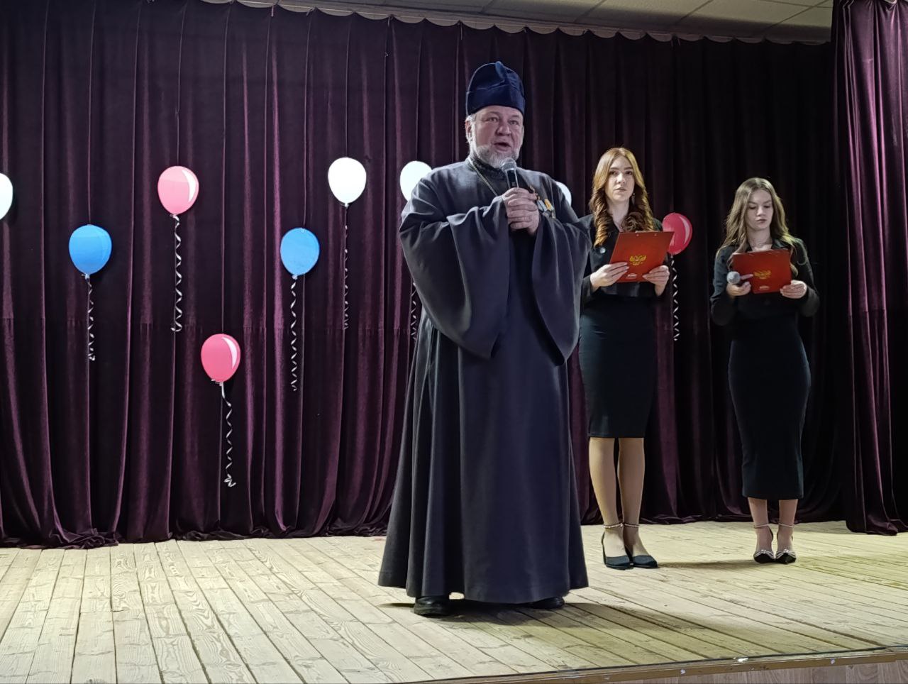 В мероприятии, подготовленном творческими коллективами Дома культуры, приняли участие глава Рождественской территории Панфилова И.Н. и настоятель храма Рождества Христова села Рождествено протоиерей Виталий Миршавка. В своем слове, обращенном к присутствующим в зале, священник отметил, что в данный момент День защитника Отечества является праздником всех россиян, так как наша победа куется не только на линии боевого соприкосновения, но и в глубоком тылу руками и молитвами тех, кто, заботясь о наших воинах, подъял на себя нелегкий труд волонтерства и гуманитарной помощи.