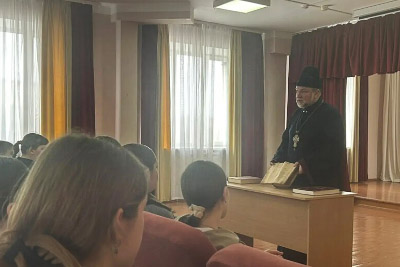 Священник рассказал ребятам о возникновении книгопечатания на Руси, о личности первопечатника диакона Ивана Федорова, о важности книги в нынешнее время. В завершении встречи священник пожелал ребятам, чтобы книга всегда находила свое место в жизни каждого из них, а образы, описанные в книгах, являлись бы вдохновляющим примером к свершениям и целеполаганиям в творческом развитии учащихся.
