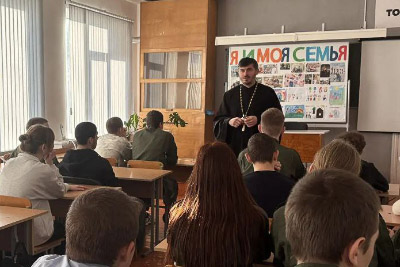 Встреча была посвящена всероссийскому Дню благодарности родителям и прошла в форме диалога со священником. В общении с ребятами иерей Дмитрий говорил о вере в Бога и верующей семье в обществе; о семейных ценностях; о важности молитвы родителей за детей и воспитании детей в вере; о взаимоотношениях супругов; о Таинствах церкви и т.д. Во второй части мероприятия священник ответил на анонимные вопросы школьников.