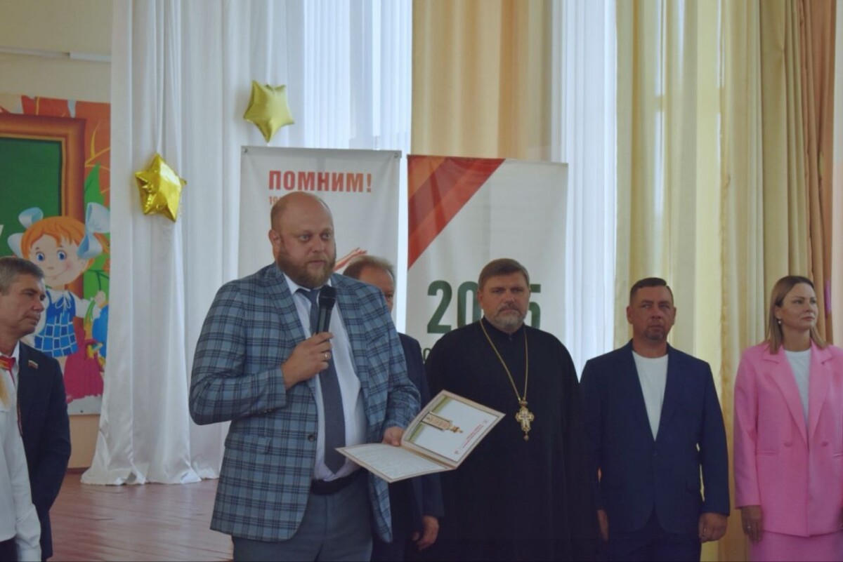 Настоятель храма Усекновения главы Иоанна Предтечи п. Уразово посетил линейку ГБОУ «Валуйская общеобразовательная школа-интернат №1» для детей-инвалидов и обучающихся с ограниченными возможностями. С началом учебного года учащихся поздравили директор Людмила Анатольевна Кальницкая и депутат Валуйского муниципального округа от партии Единая Россия Сенаторова Елена Николаевна.