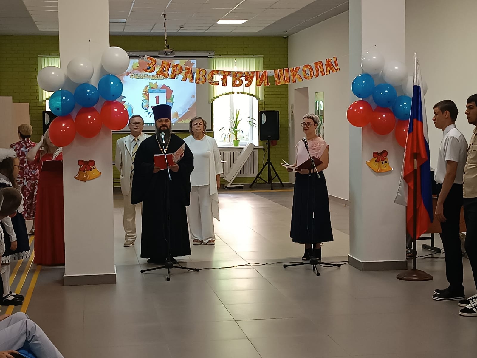 Настоятель храма во имя священномученика Игнатия Богоносца г. Валуйки протоиерей Иоанн Макеев посетил праздничную линейку, посвященную Дню Знаний, в школе №1 г. Валуйки. На линейке также присутствовала заместитель главы администрации муниципального района «Город Валуйки и Валуйский район» по социальным вопросам Дуброва Ирина Вячеславовна.