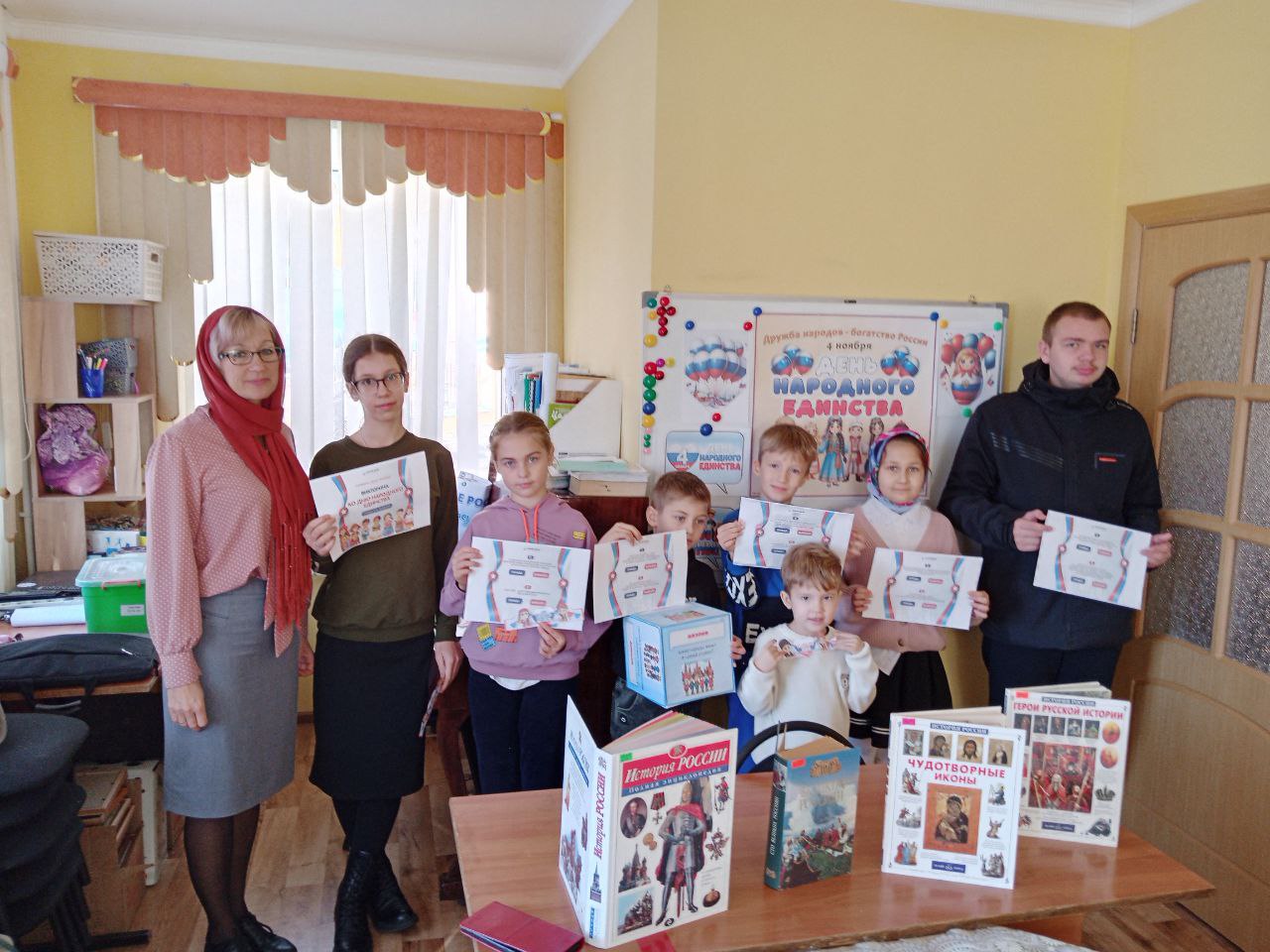 Воспитанники воскресной группы с интересом приняли участие в интерактивном эрудит-маршруте. В завершение мероприятия они выполнили творческие задания и изготовили тематические сувениры. Также ребята нарисовали рисунки к выставке, посвященной празднику Казанской иконы Божией Матери и Дню народного единства.