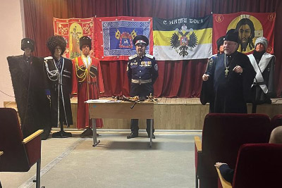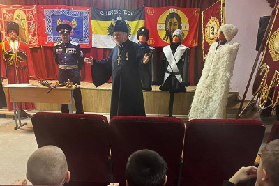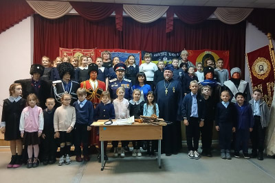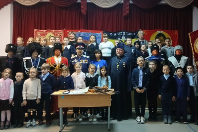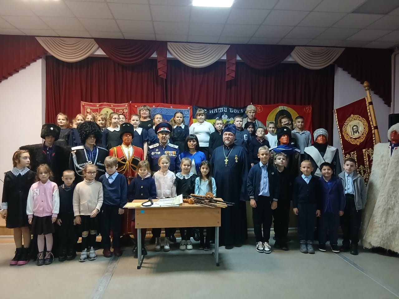 5 ноября в Доме культуры с. Рождествено Валуйского муниципального округа в рамках передвижной тематической выставки, посвящённой истории казачества, прошла встреча учащихся 2-х и 3-х классов Рождественской СОШ с организатором выставки, казачьим Атаманом МКЦ, СКВКРиКЗ и Белгородского Отдела конвоя памяти императора Николая II Сердюковым А.М. и руководитеоем Отдела по взаимодействию с казачестаом Валуйской епархии, духовником казачьих обществ Валуйского муниципального округа, настоятелем храма Рождества Христова с. Рождествено протоиереем Виталием Миршавкой.