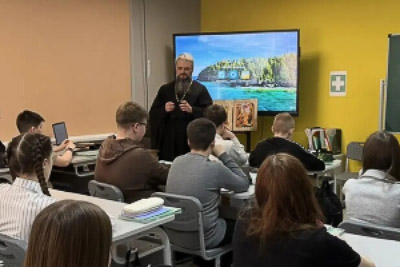 Священник рассказал школьникам о прошедшем празднике Входа Господня в Иерусалим и предстоящем празднике Благовещения Пресвятой Богородицы, а также ответил на интересующие ребят вопросы.