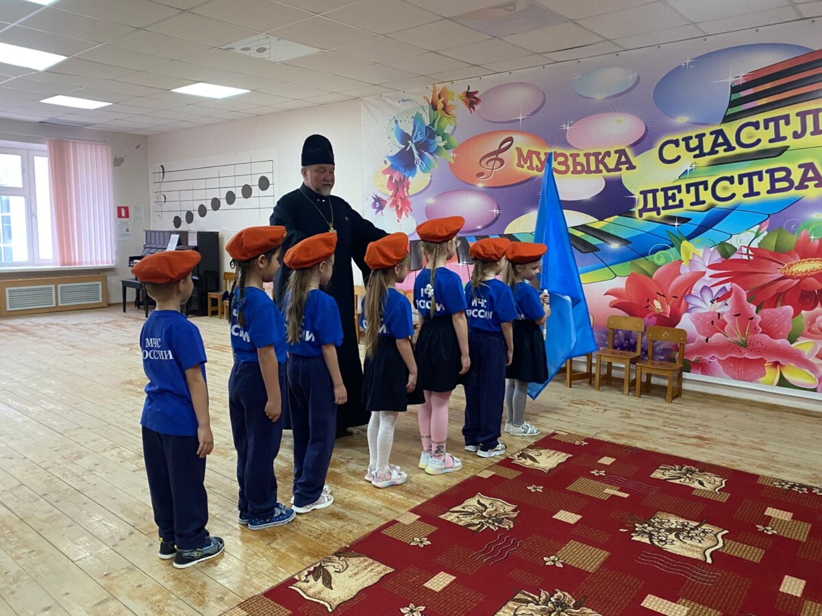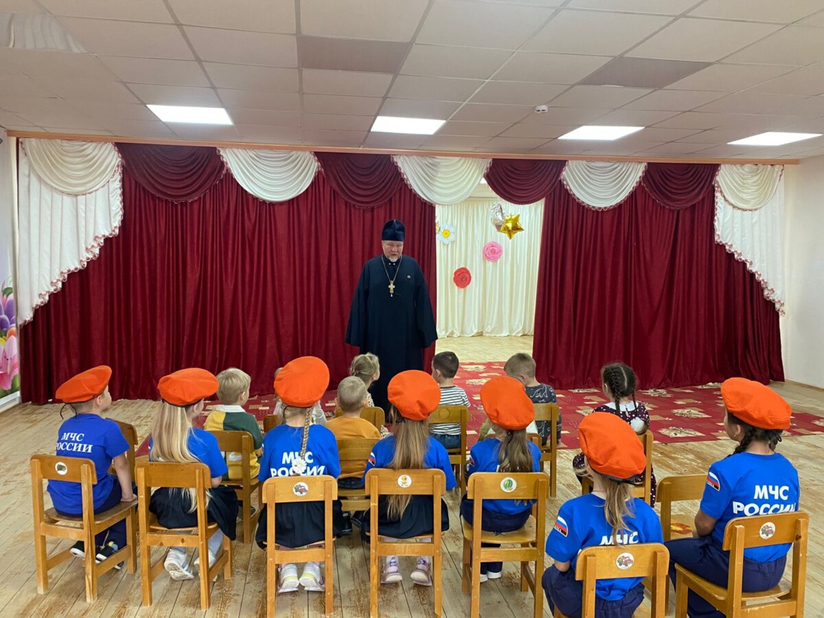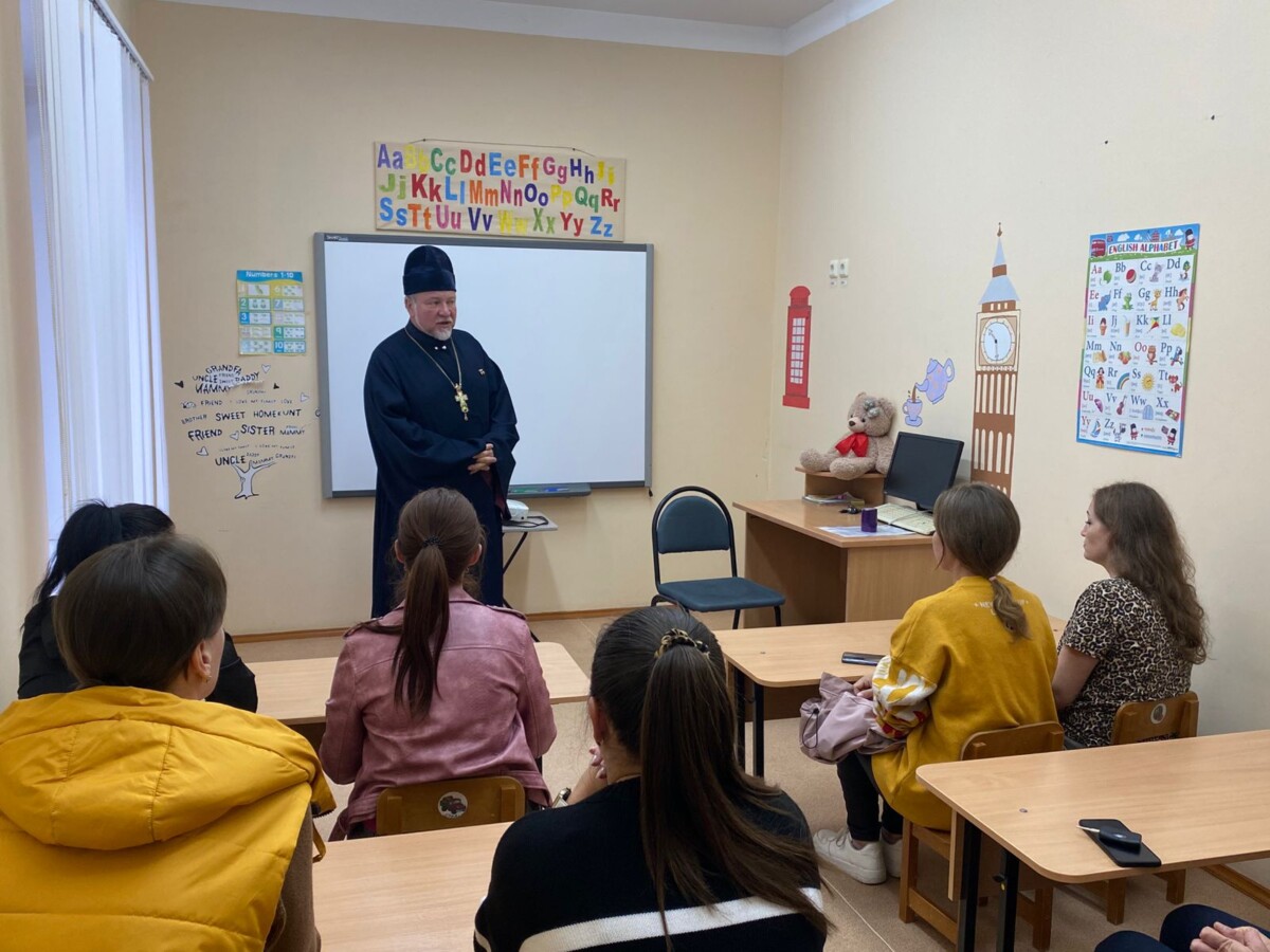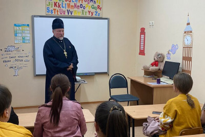 Перед началом родительского собрания священник встретился с воспитанниками учреждения, проведя с ними беседу о преподобном Сергии Радонежском и приближающемся празднике Покрова Пресвятой Богородицы.