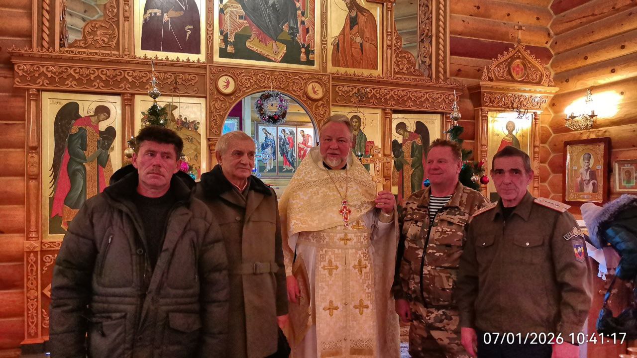 Новости7 января, в день Светлого Христова Рождества, за праздничным Богослужением в храме Рождества Христова с. Рождествено Валуйского муниципального округа, молились и принимали участие атаманы Валуйского округа ДКВ СКР «Станица Староказацкая» Скидоненко В.Е., Кузнецов А.Н. и Аблезгов А.Н.