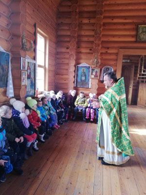 Настоятель храма протоиерей Виталий Миршавка рассказал детям о важности совместной молитвы в жизни христианина, устройстве и убранстве храма.