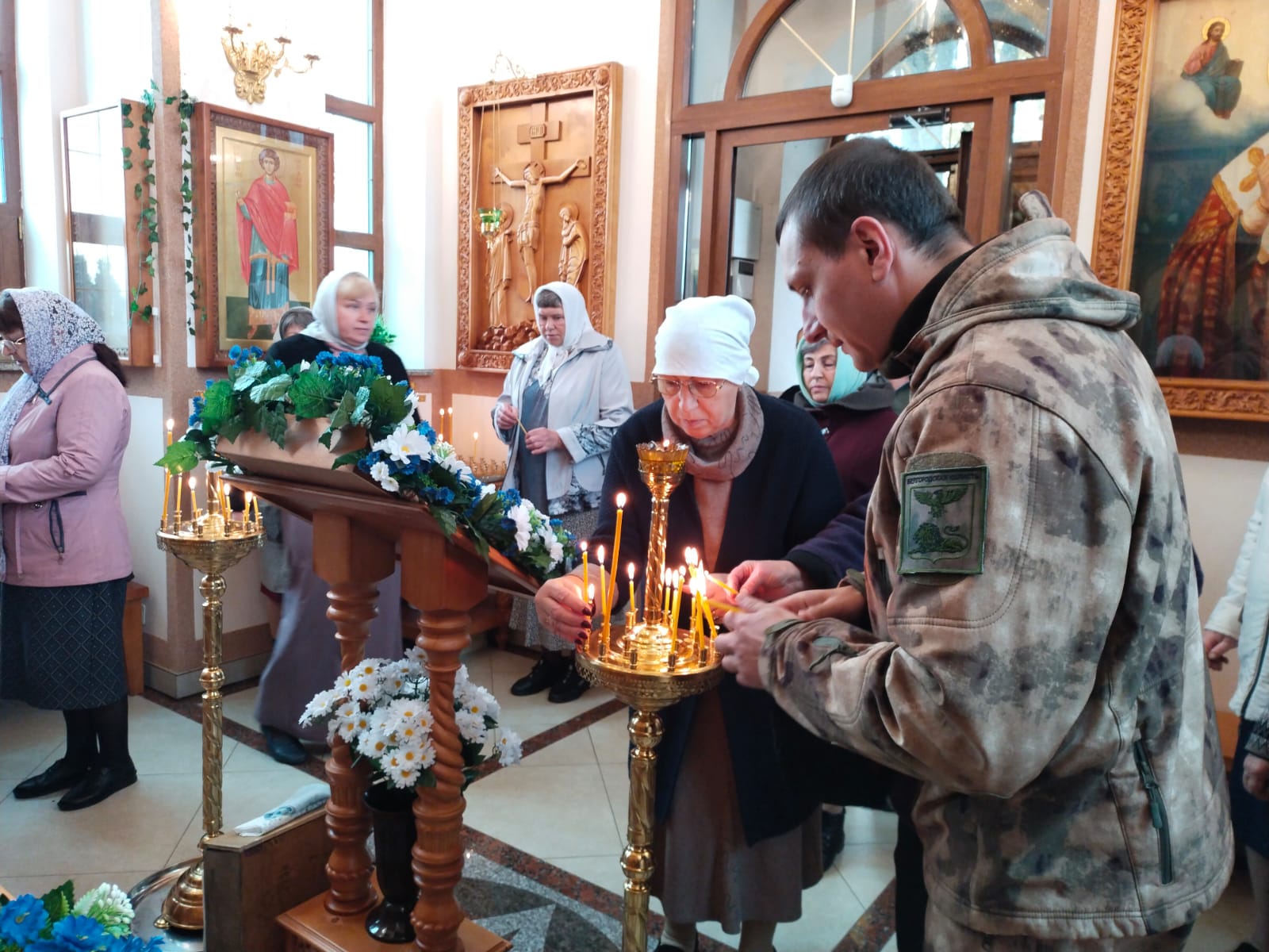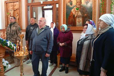 За Литургией в храме молились: Товарищ атамана ВГКО Родионов С.В., заместитель атамана ВГКО Мосин В.Е. и Товарищ атамана ХКО "Шушпановское" Романов Р. С.