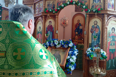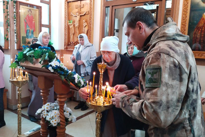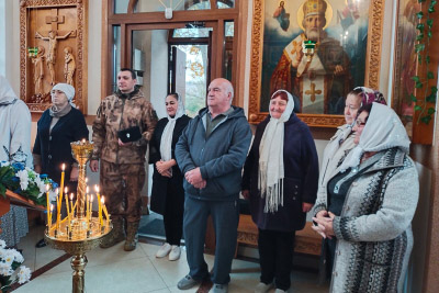 По завершении Литургии священником была прочитана молитва преподобному Сергию пред иконой с частицей мощей Угодника Божия и провозглашены уставные много летия Священноначалию Церкви нашей, властям, казачеству и народу России и, конечно, именинникам, носящим имя Преподобного.