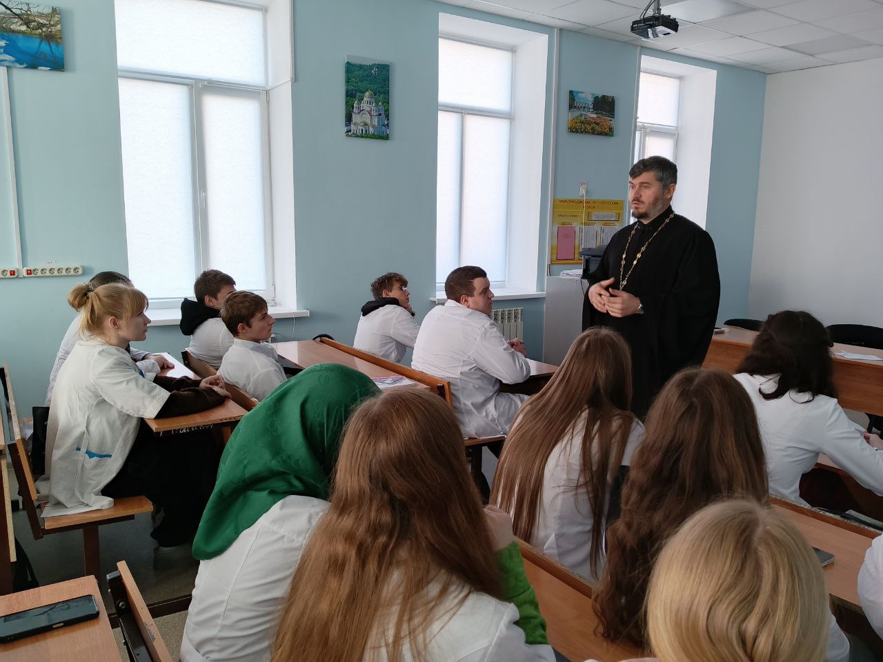 Новости10 декабря в здании медицинского отделения ОГАПОУ «Валуйский колледж» состоялась встреча клирика Никольского храма города Валуйки иерея Дмитрия Гроцкого со студентами первого курса.