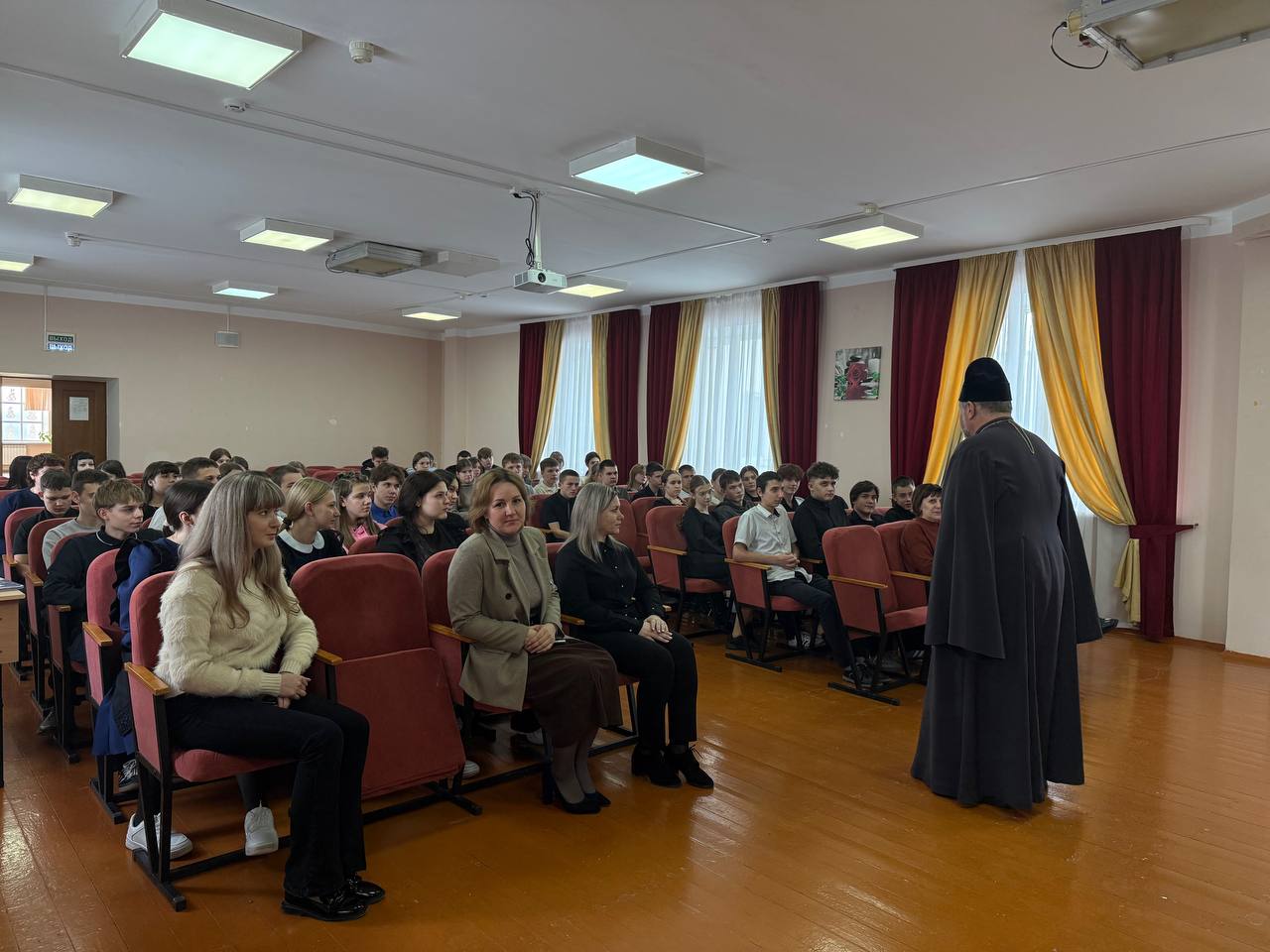 Новости13 января, в день Отдания праздника Рождества Христова, в МОУ «Рождественская СОШ» состоялась встреча настоятеля храма Рождества Христова с. Рождествено с учащимися 8-х-11-х классов.