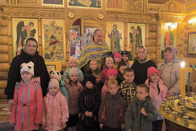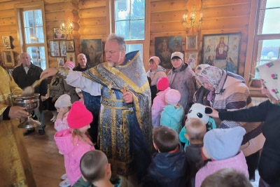 Богослужение совершил настоятель храма протоиерей Виталий Миршавка. По окончании Литургии был совершен молебен, после которого священник окропил святой водой детей и рассказал им о празднике.