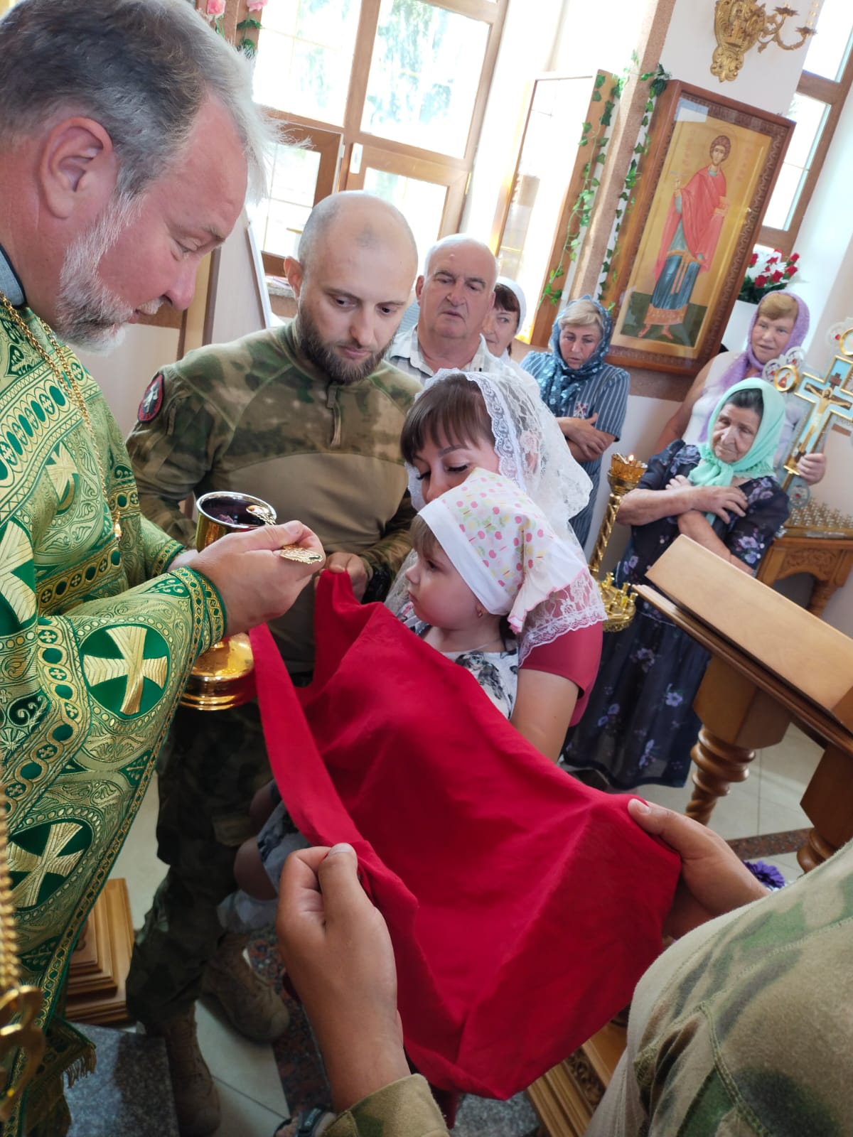 По целовании Креста, священник вручил всем прихожанам иконки Христа – Спасителя и Божией Матери.