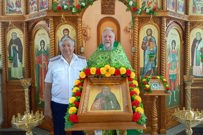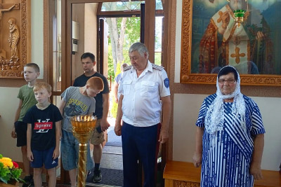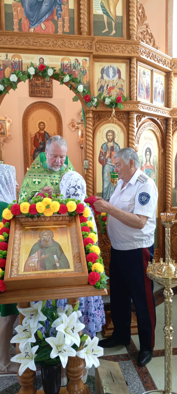 За литургией в числе прихожан молились почётный атаман ВГКО БОКО ВКО ЦКВ Дронов А. А. и Товарищ атамана Родионов С. В.