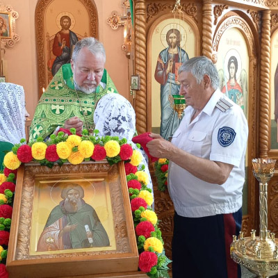 В своём слове священник, поздравляя жителей с Праздником, отметил, что тот подвиг веры, которым просиял преподобный Сергий Радонежский, должен явиться примером для подражания и для нынешних жителей России. Батюшка так же призвал свято чтить, хранить и преумножать те традиции и устои, которые способствовали бы укреплению нашего общества в любви, вере, благочестии и всестороннем развитии на благо нашего Отечества.