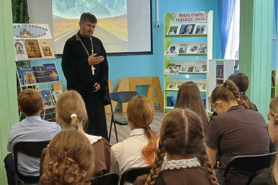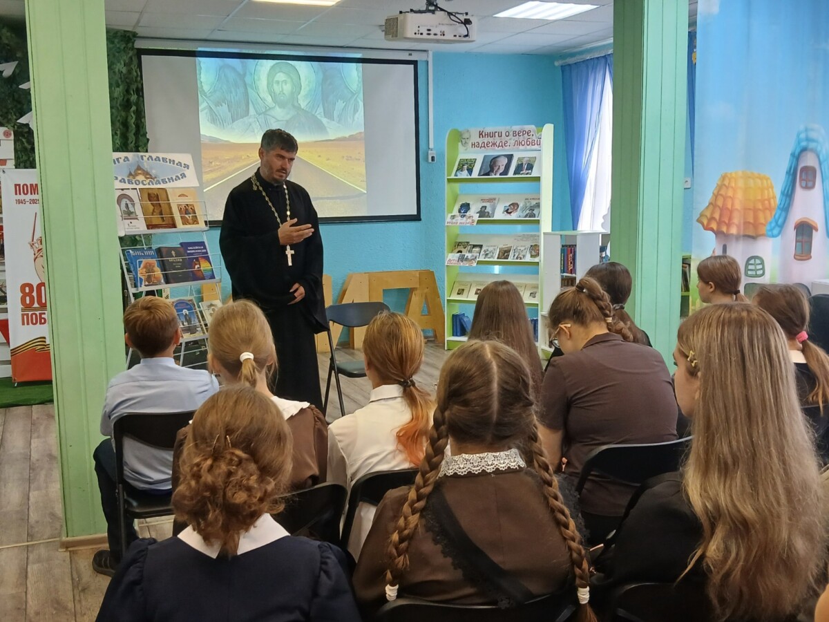 Новости19 сентября клирик храма святителя Николая Чудотворца города Валуйки иерей Дмитрий Гроцкий провел встречу с учащимися 7-го класса МОУ «СОШ № 1» города Валуйки.