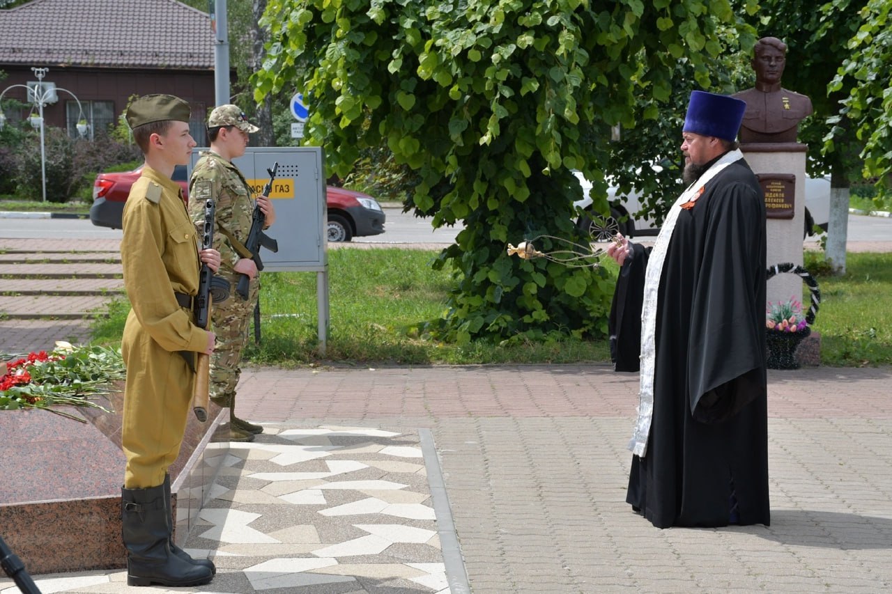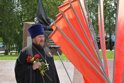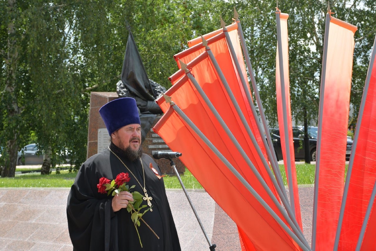 Выступая перед участниками митинга, протоиерей Евгений отметил, что в каждой семье знают эту дату — 22 июня, все должны помнить о том, что произошло в этот день и отдавать дань памяти и благодарность тем, кто участвовал в Великой Отечественной войне и «ковал» победу. Священник подчеркнул, что мы должны быть благодарны поколению победителей за жизнь и свободу, за наше будущее. В их подвиге сегодня мы черпаем силы и стойкость перед новыми вызовами и уверенность в том, что победа будет за нами. Память всех, кто не вернулся домой, почтили минутой молчания. Возложили цветы к Вечному огню.
