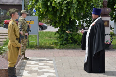 Новости22 июня, в День памяти и скорби, благочинный Красненского церковного округа протоиерей Евгений Задорожный принял участие в торжественной церемонии возложения цветов к Вечному Огню у подножия памятника воинской Славы «Братская могила 607 советских воинов, погибших в боях с фашистскими захватчиками» в селе Красное.