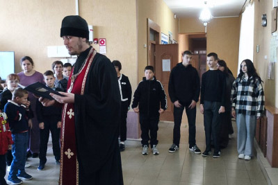 После продолжительного перерыва учреждение снова заработало в очном режиме и постепенно дети включаются в обычный формат обучения. Учебная неделя по традиции начинается с линейки, на которой священник с детьми и преподавателями молится об успешной учебе в наступающей неделе и кропит всех святой водой.
