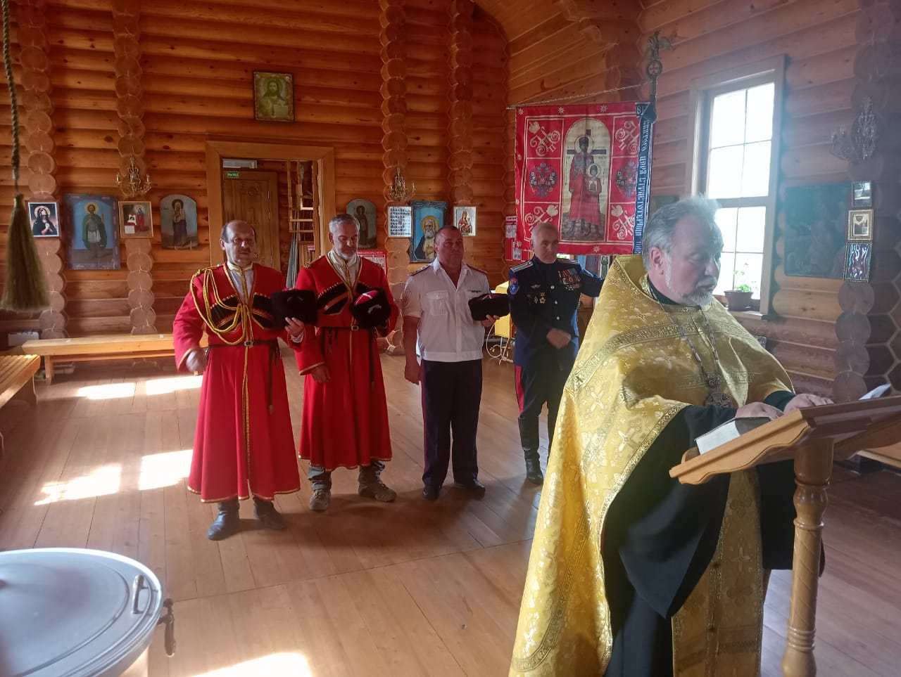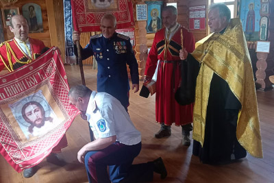 Чин верстания, предваряемый Молебным пением на всякое доброе дело, совершил руководитель Отдела по взаимодействию с казачеством Валуйской епархии, духовник казачьих обществ Валуйского городского округа протоиерей Виталий Миршавка в присутствии атамана Конвоя Белгородского Округа Сердюкова Александра Михайловича и товарища Атамана Попова Владимира Викторовича.