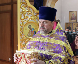 Его Преосвященству сослужили: секретарь Валуйской епархии, благочинный приходов Валуйского округа протоиерей Михаил Чайка, настоятель храма святителя Иоанна Златоуста города Валуйки протоиерей Андрей Шаройко, диакон Вячеслав Елисафенко и диакон Димитрий Кобзарев.