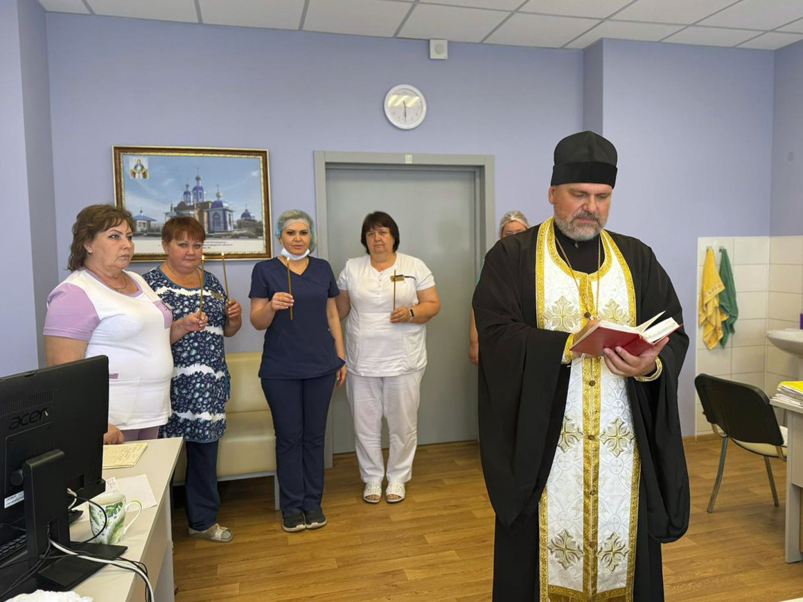 Освящение было совершено благочинным приходов Валуйского округа протоиереем Михаилом Чайкой по просьбе заведующей отделением Надежды Бондаренко. Ему сослужил, настоятель храма Казанской иконы Божией матери с. Казинка иерей Михаил Морозов.