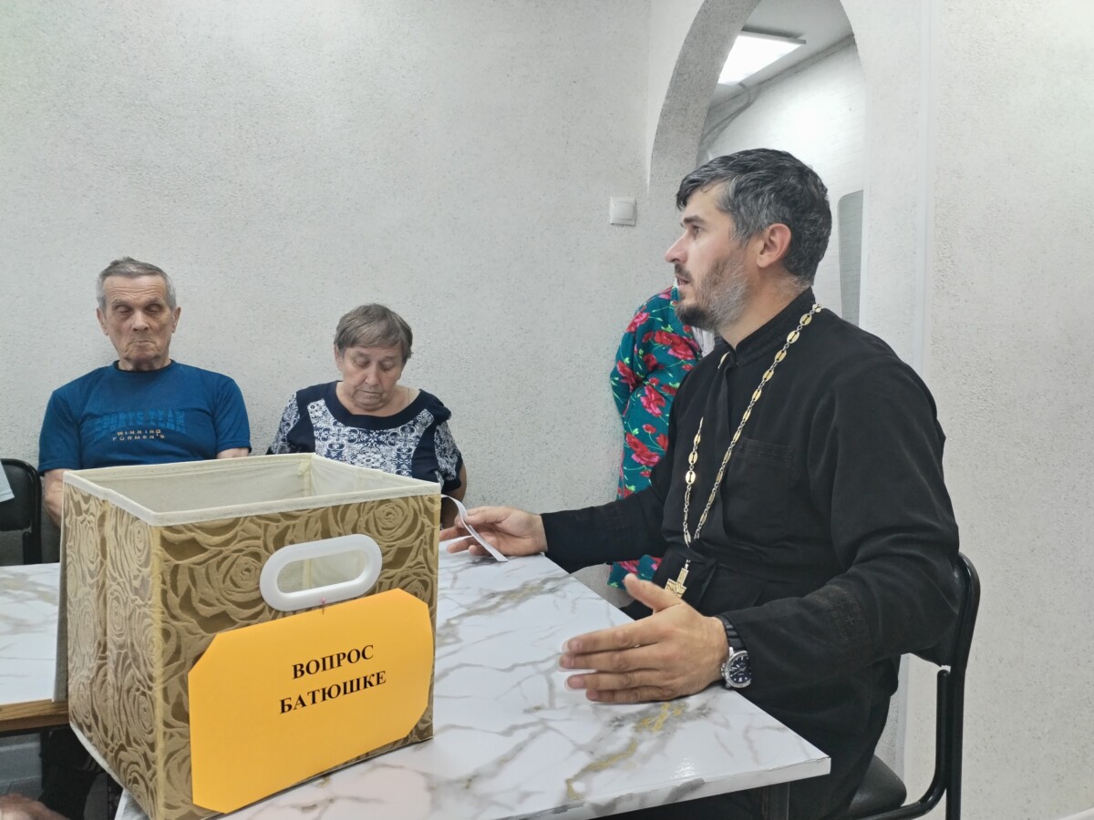 В рамках цикла просветительских встреч «Вопрос батюшке» иерей Дмитрий Гроцкий ответил на вопросы о христианской жизни, вере и церкви. Завершилось мероприятие тактильным знакомством с Огневидной иконой Божией Матери, которую передали в библиотеку для незрячих и слабовидящих людей прихожане Никольского храма города Валуйки.
