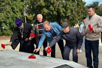 В этот день настоятель храма священномученика Игнатия Богоносца города Валуйки протоиерей Иоанн Макеев принял участие в возложении цветов к памятникам защитникам Отечества.